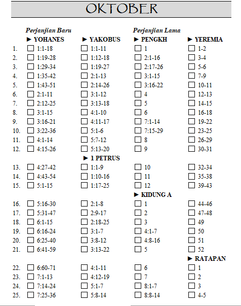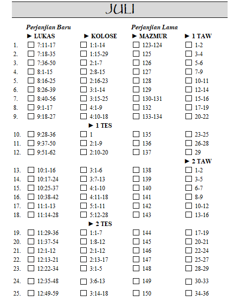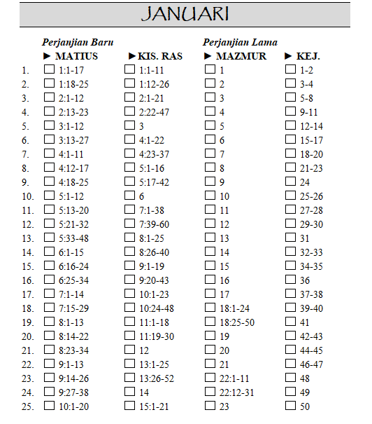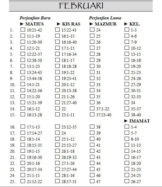pembacaan Alkitab sampai selesai mulai dari Kitab Kejadian