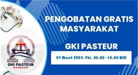 Pelayanan kesehatan berupa pengobatan gratis ini merupakan bagian dari kepedulian gereja terhadap masyarakat kurang mampu. Dilaksanakan di gedung pendukung GKI Pasteur Jl. Pasteur 10 Bandung, dan berlangsung mulai pukul 08.00 WIB sampai dengan pukul 12.00 WIB. (gkip/ms)